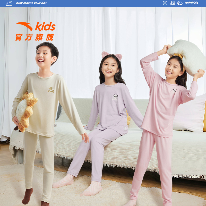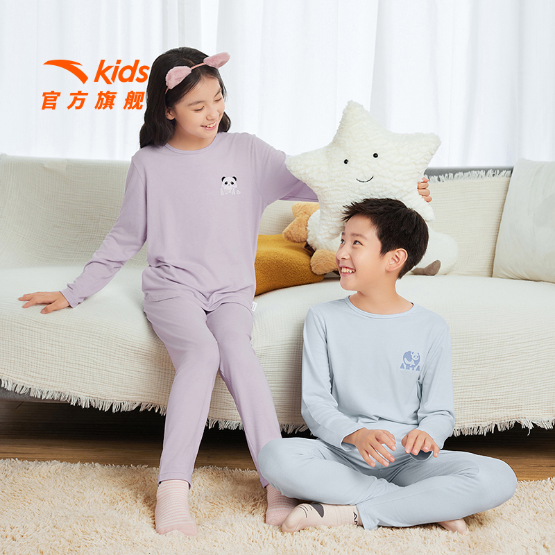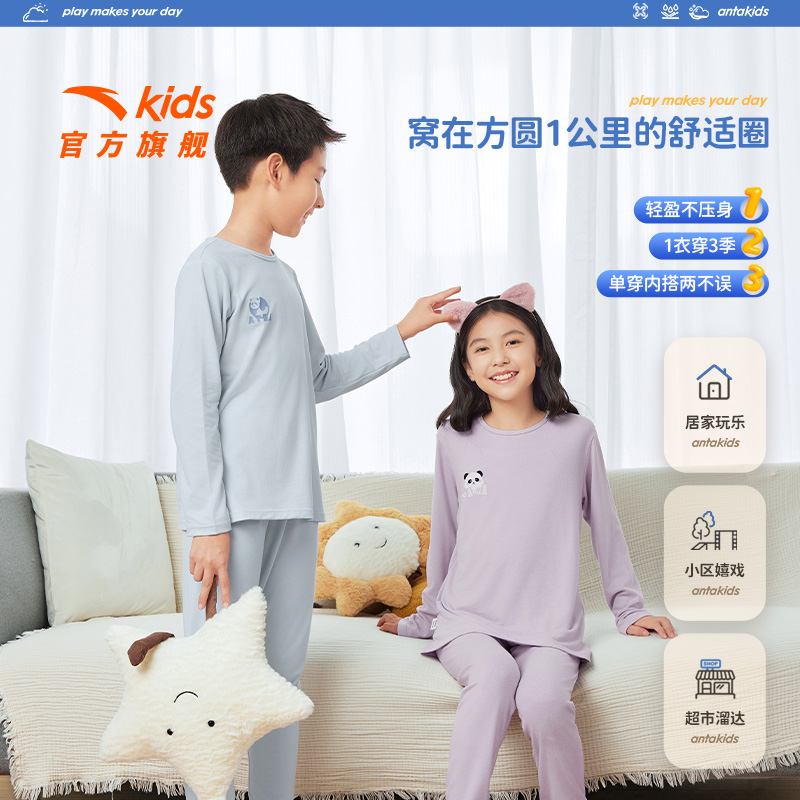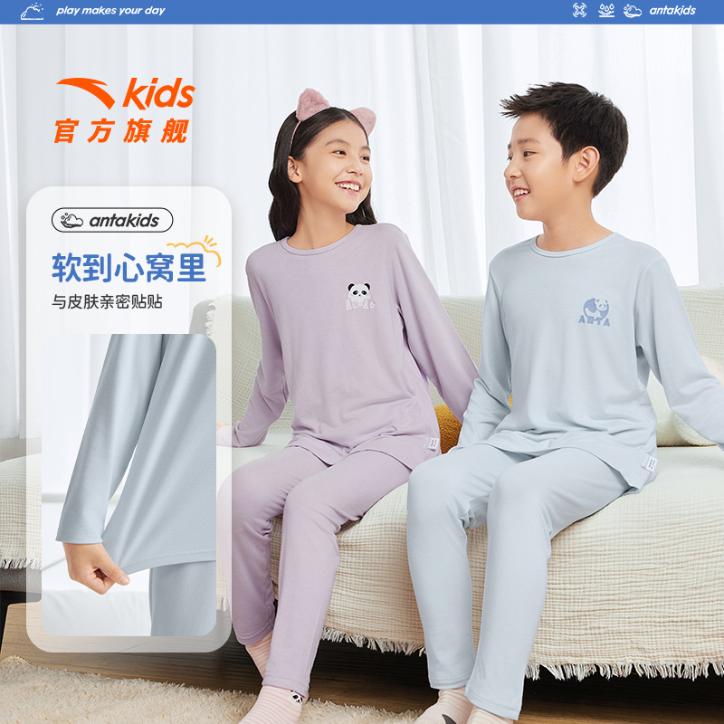 安踏儿童装男童睡衣秋衣秋裤女童内衣套装2025新款舒适亲肤家居服