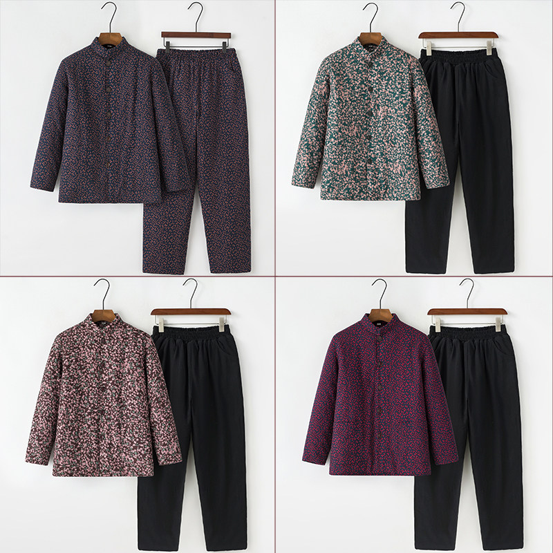 冬季女士纯棉花袄大码碎花短款奶奶冬天老太太棉服妈妈棉裤套装