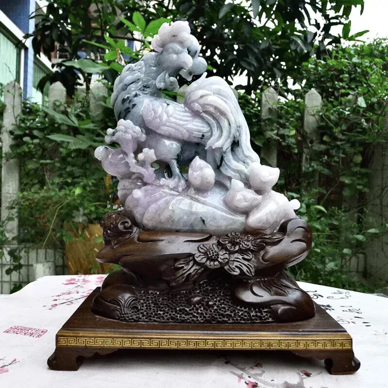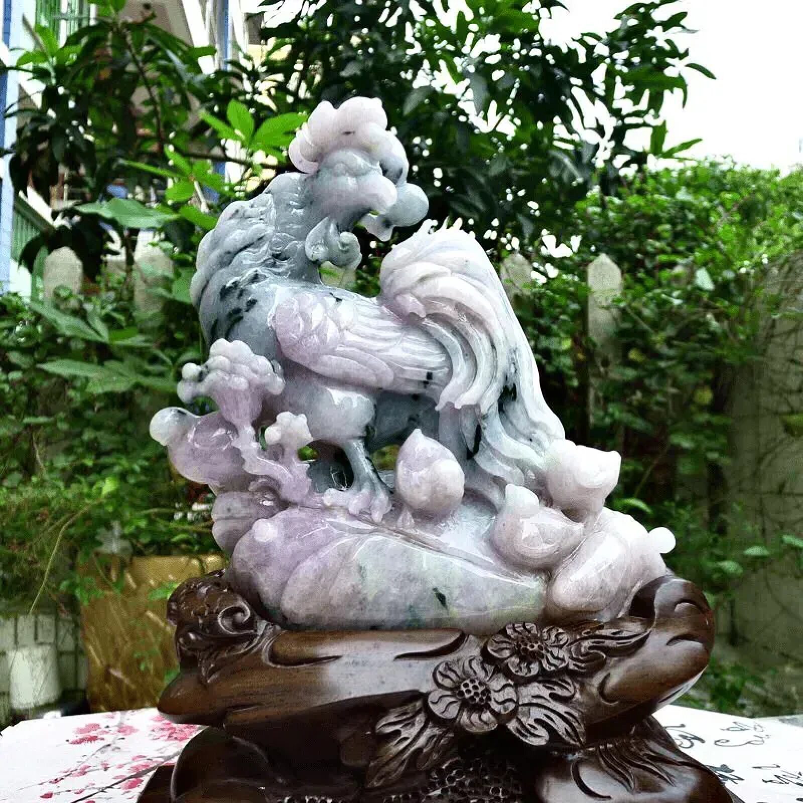 天然翡翠A货紫底金鸡报晓大摆件阖家幸福客厅生肖公鸡摆件3.52kg