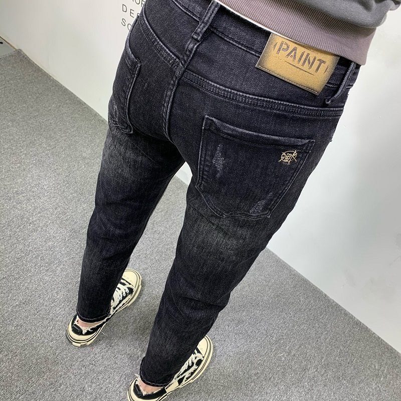 牛仔裤潮流修身小脚黑色九分裤子