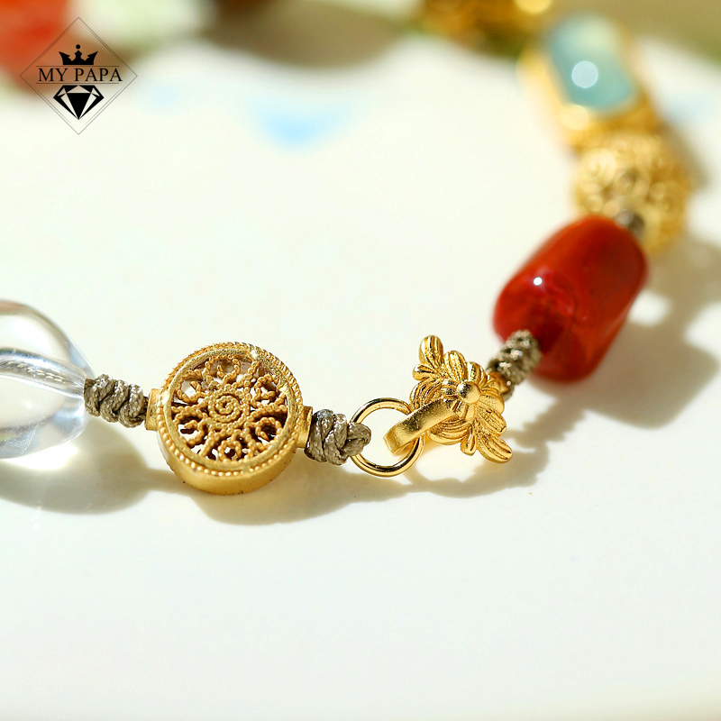 MYPAPA水晶彩宝收藏级彩多宝琥珀南红玛瑙白水晶S925银手链女手串