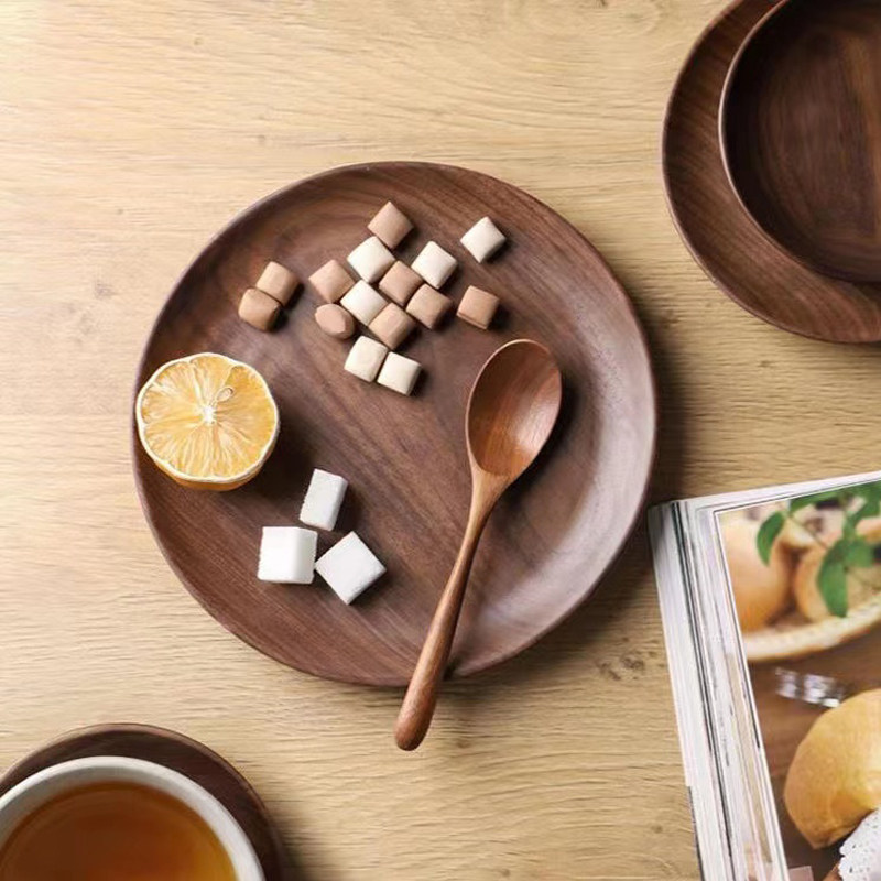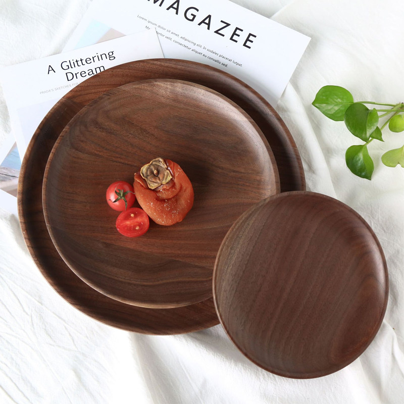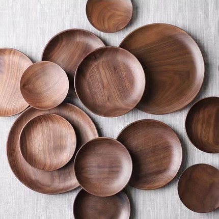 北美黑胡桃木质餐盘圆形