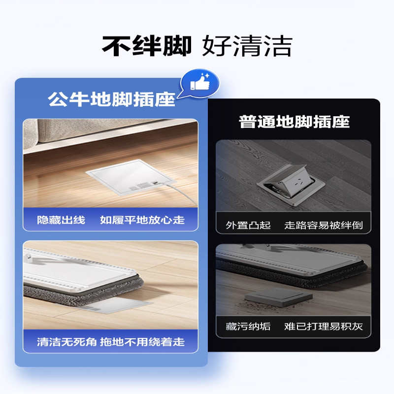 公牛地插插座超薄隐形嵌入式纯平地插地板家用地脚插自带底盒GD9