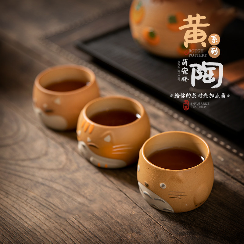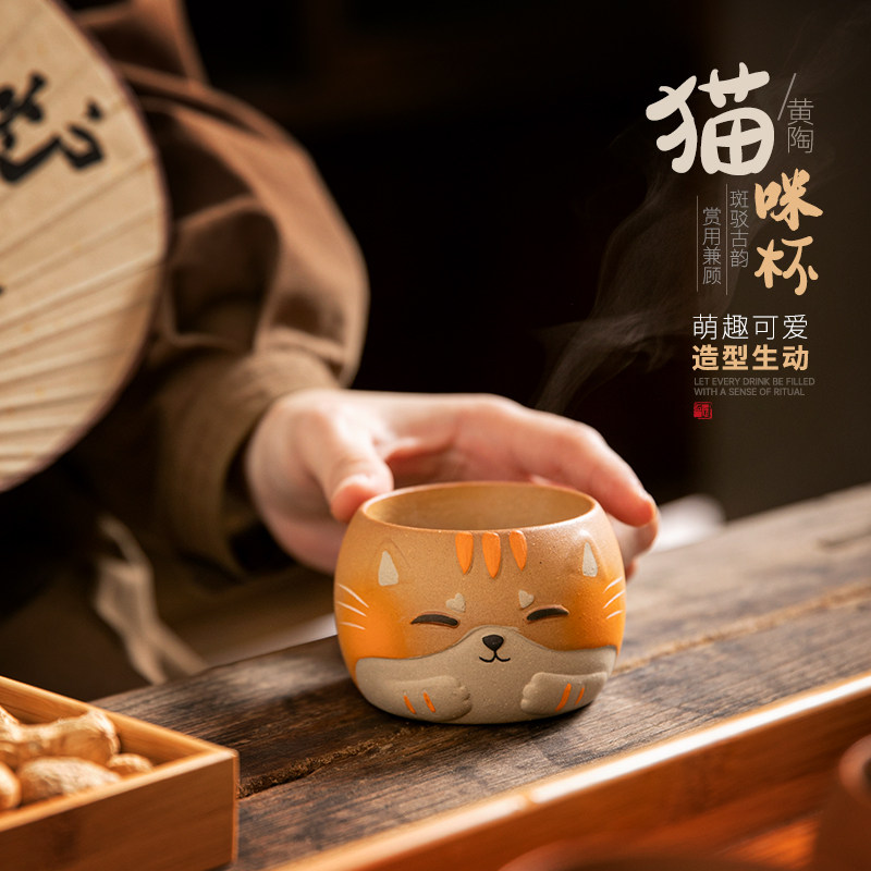 黄陶主人杯单杯家用喝茶萌宠杯