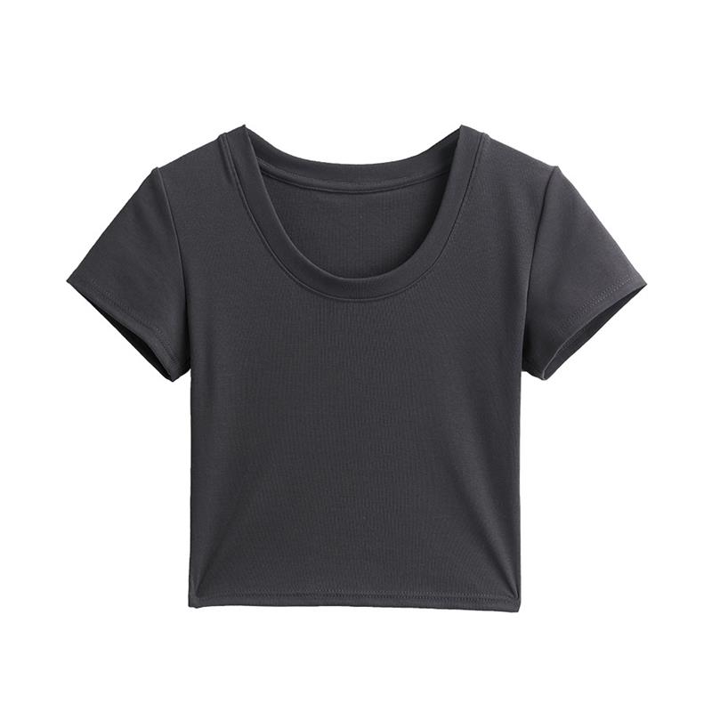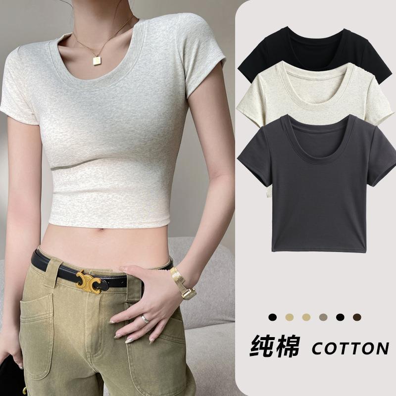 2024纯棉正肩短袖t恤女士春夏季可外穿辣妹短款修身美式酷辣上衣