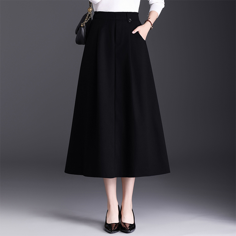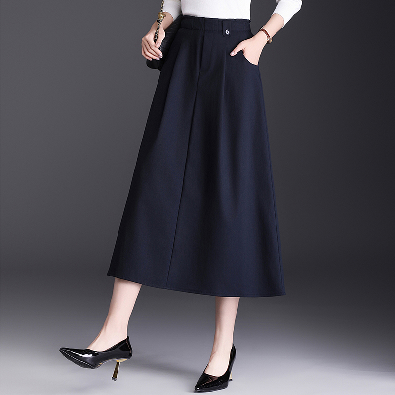a字裙半身裙女春秋2025新款高腰休闲口袋裙子中长款遮胯显瘦伞裙