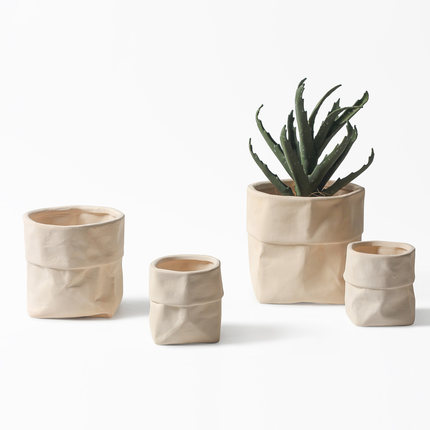 素烧纸袋陶盆手绘创意透多肉植物清仓透气简约花盆陶瓷特价大口径