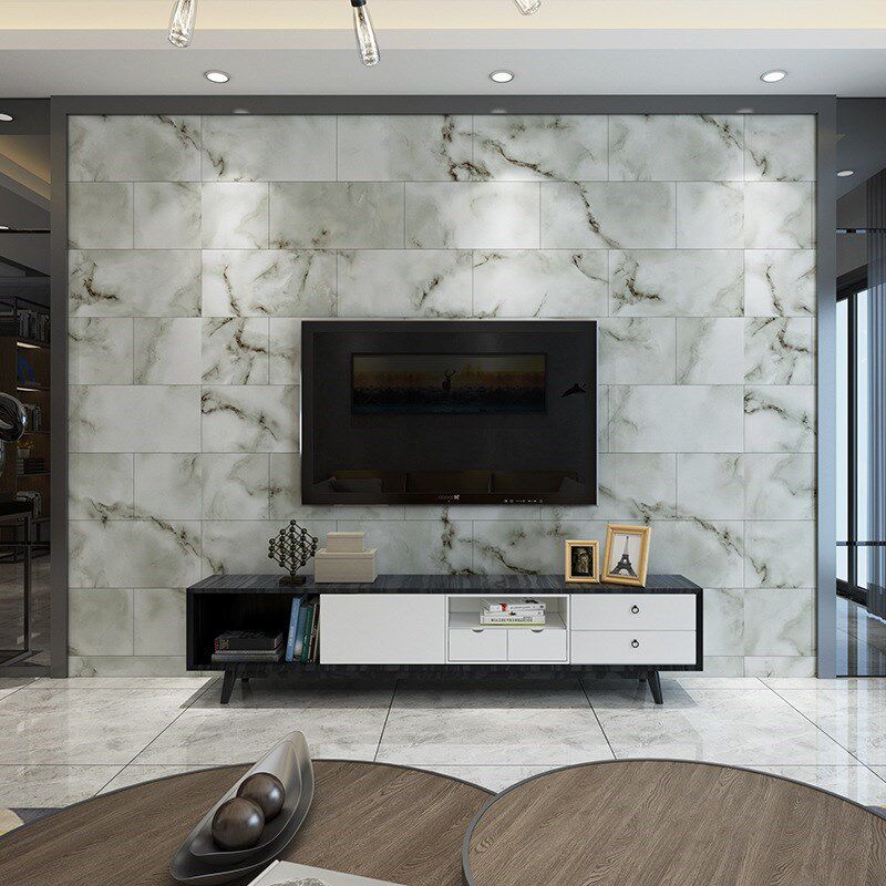 加厚亮面大理石纹墙贴墙纸自粘墙砖墙面翻新卫生间防水仿瓷砖贴纸