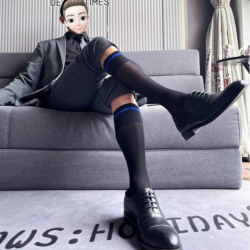 高端丝袜男士长筒特色条纹超薄透气商务正装ICK小腿袜皮鞋黑袜