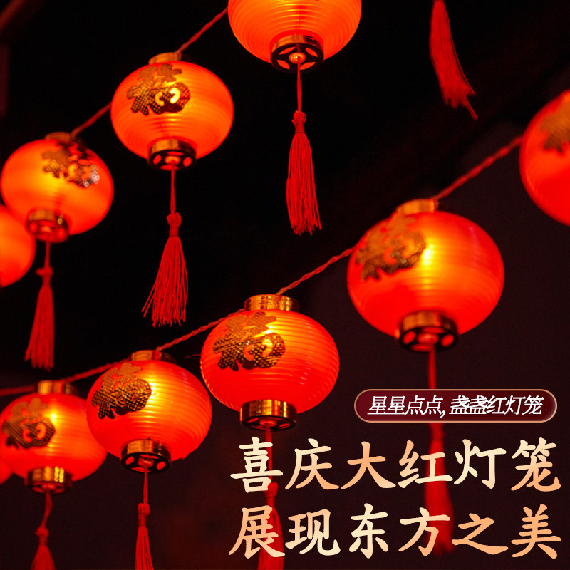 2026过年太阳能红灯笼串灯户外庭院装饰灯年氛围场景布置气氛灯