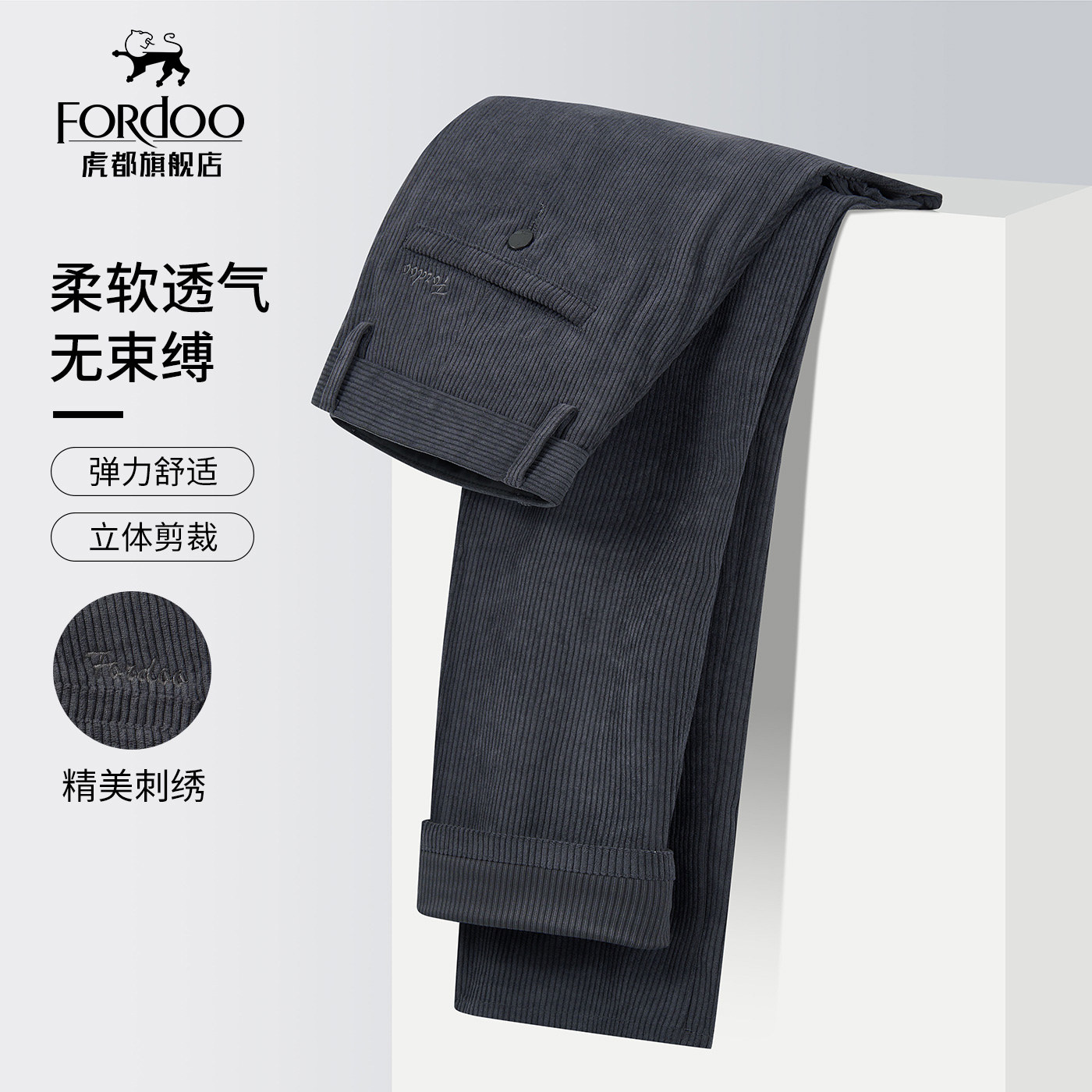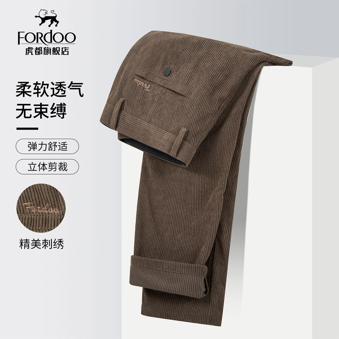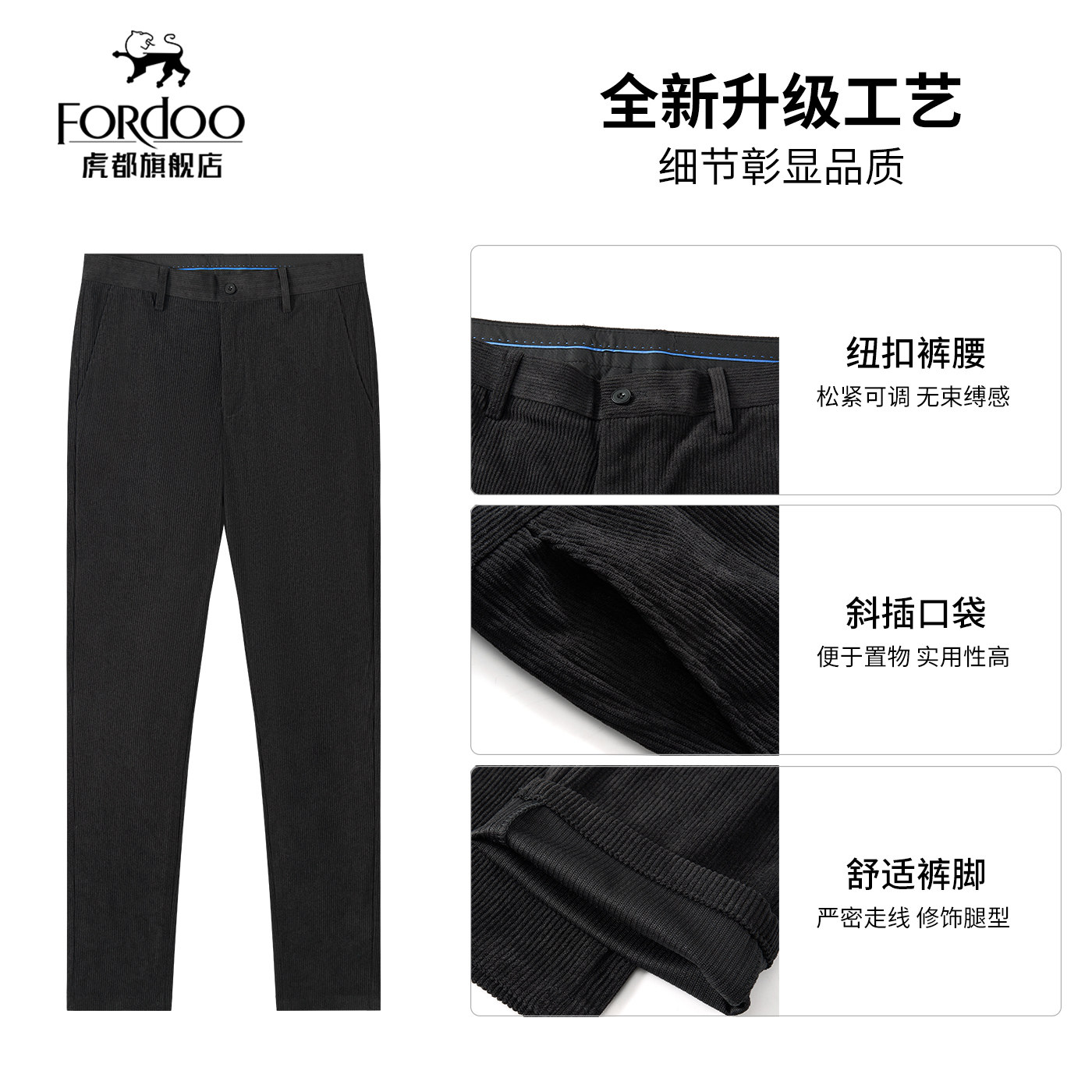 虎都官方旗舰店男装灯芯绒保暖裤