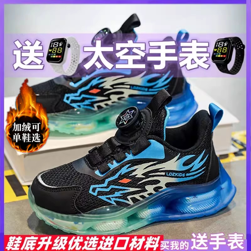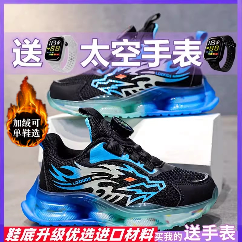 乔丹格兰男童鞋子秋冬2025新款皮面加绒儿童运动篮球鞋男孩跑步鞋