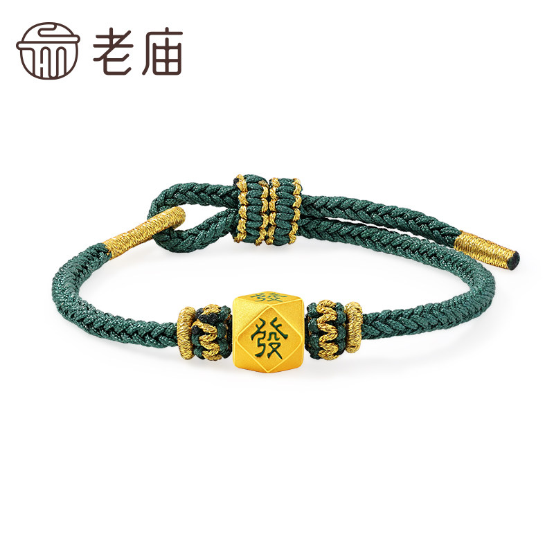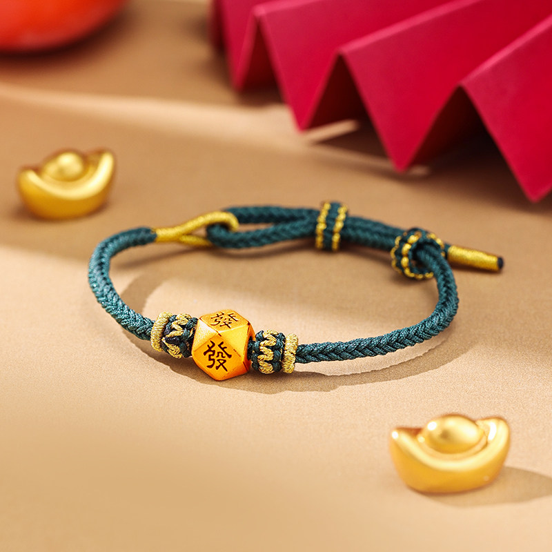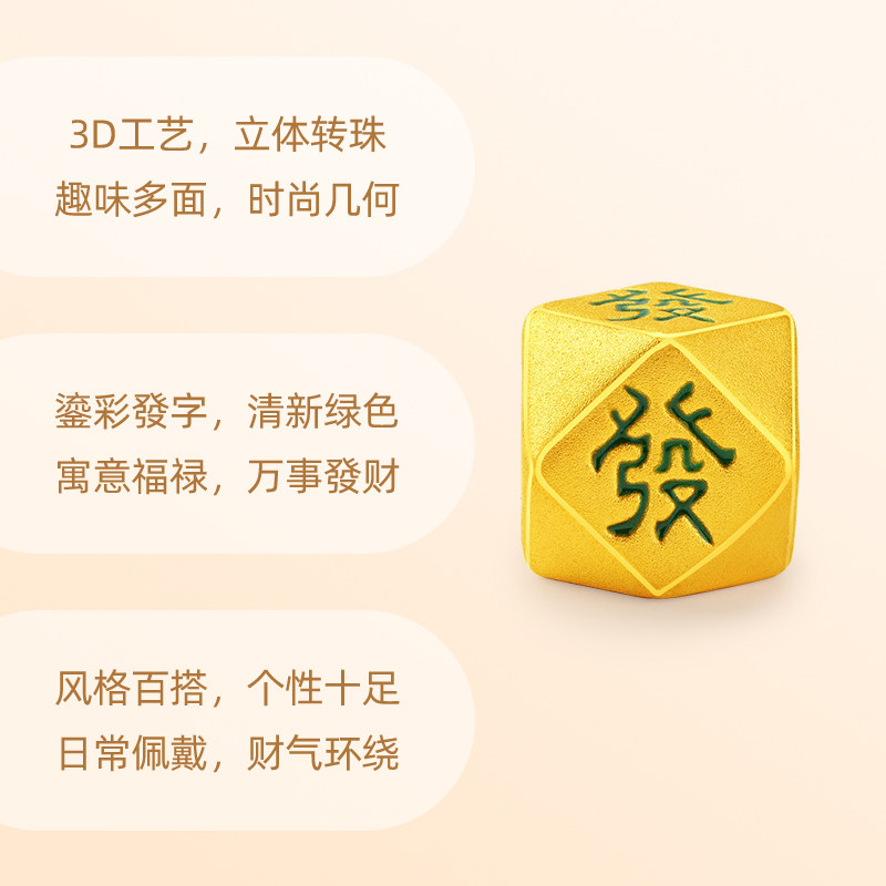 老庙黄金足金鎏彩转转发财串珠挂坠3D發字招财进宝几何送礼