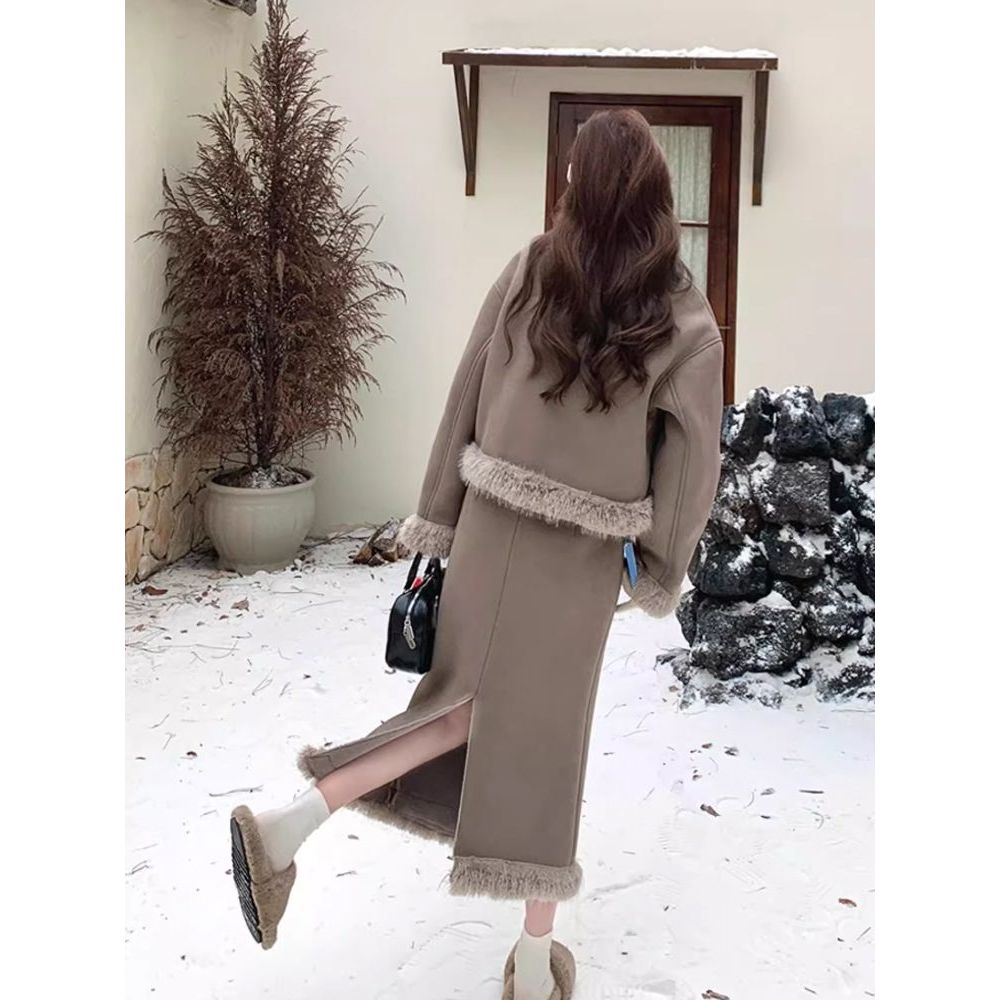 莫斯科晚风 高级感小香风套装裙女冬季穿毛毛外套半身裙两件套装