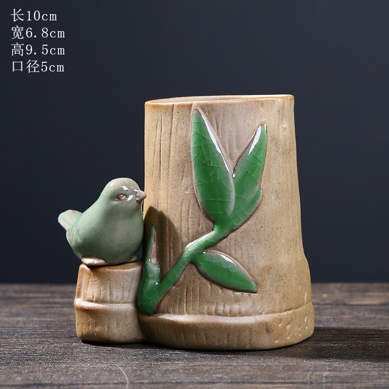 现代创意粗陶小清新花瓶家居客厅装饰花器摆件铜钱草水培容器花插