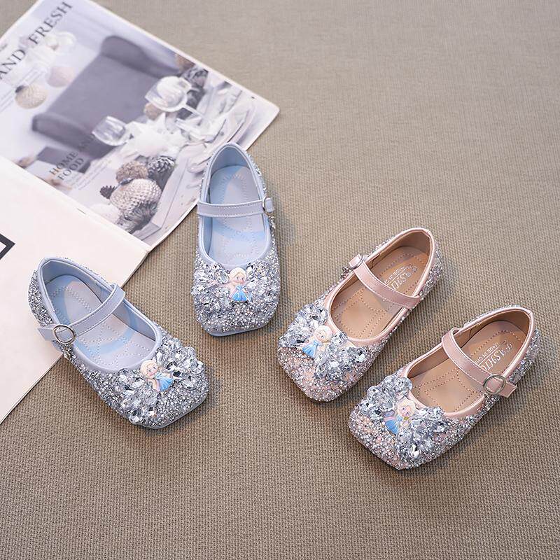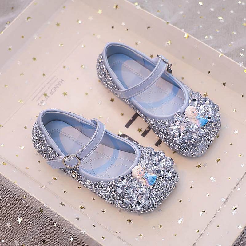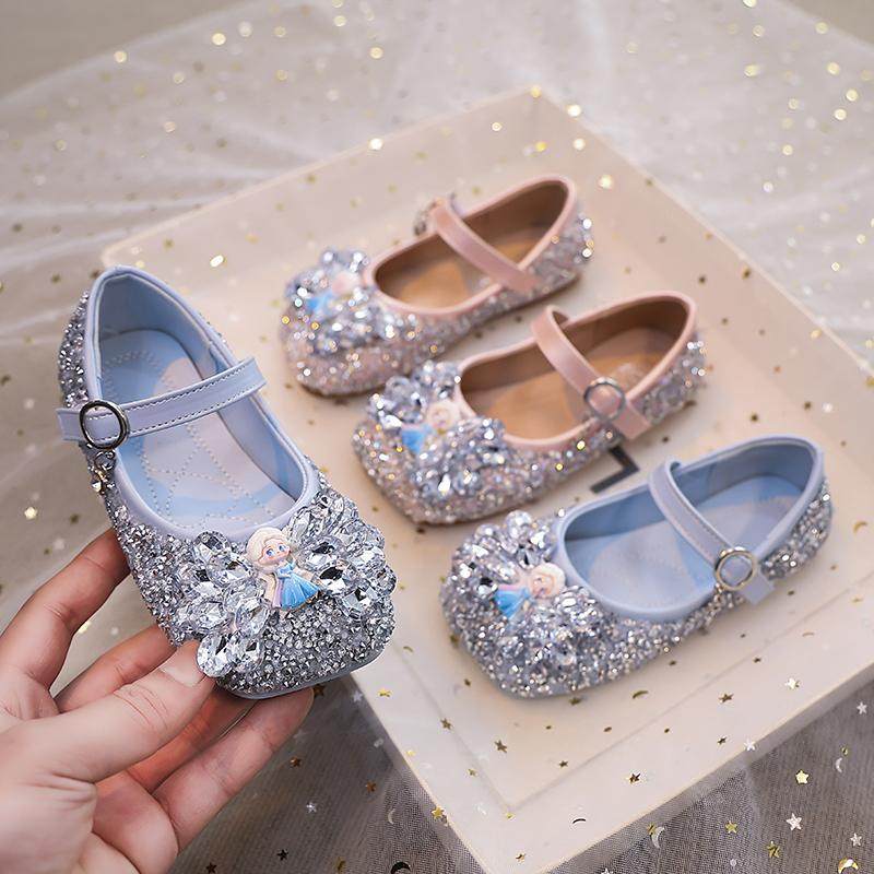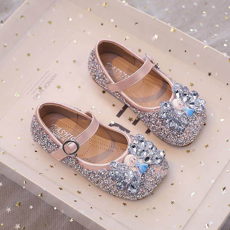 女童公主鞋2025秋季新款爱莎小皮鞋小女孩水晶鞋水钻宝宝单鞋演出