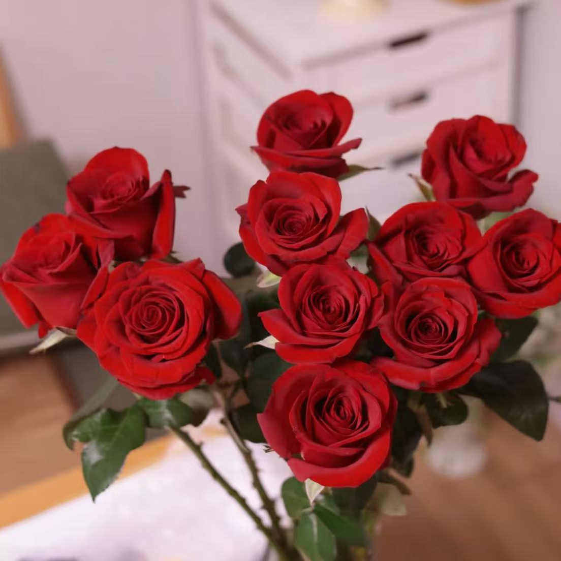 红玫瑰鲜花家用插花水养花束室内餐桌生日礼物表白浪漫客厅