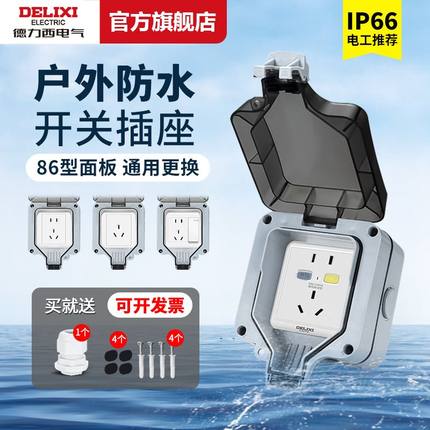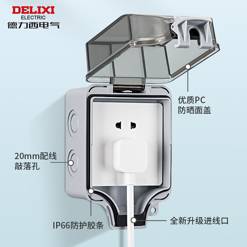 德力西户外防水防暴雨电源插座盒明装防水开关插座户外防水密封盒
