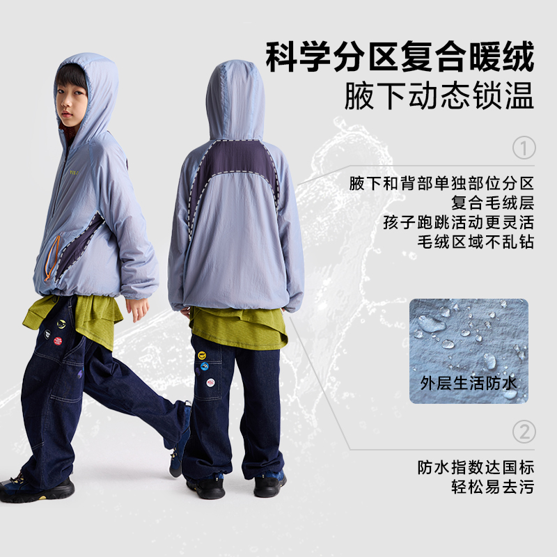咕噜日记童装儿童户外上衣2025秋冬男女童连帽外套加绒休闲百搭款