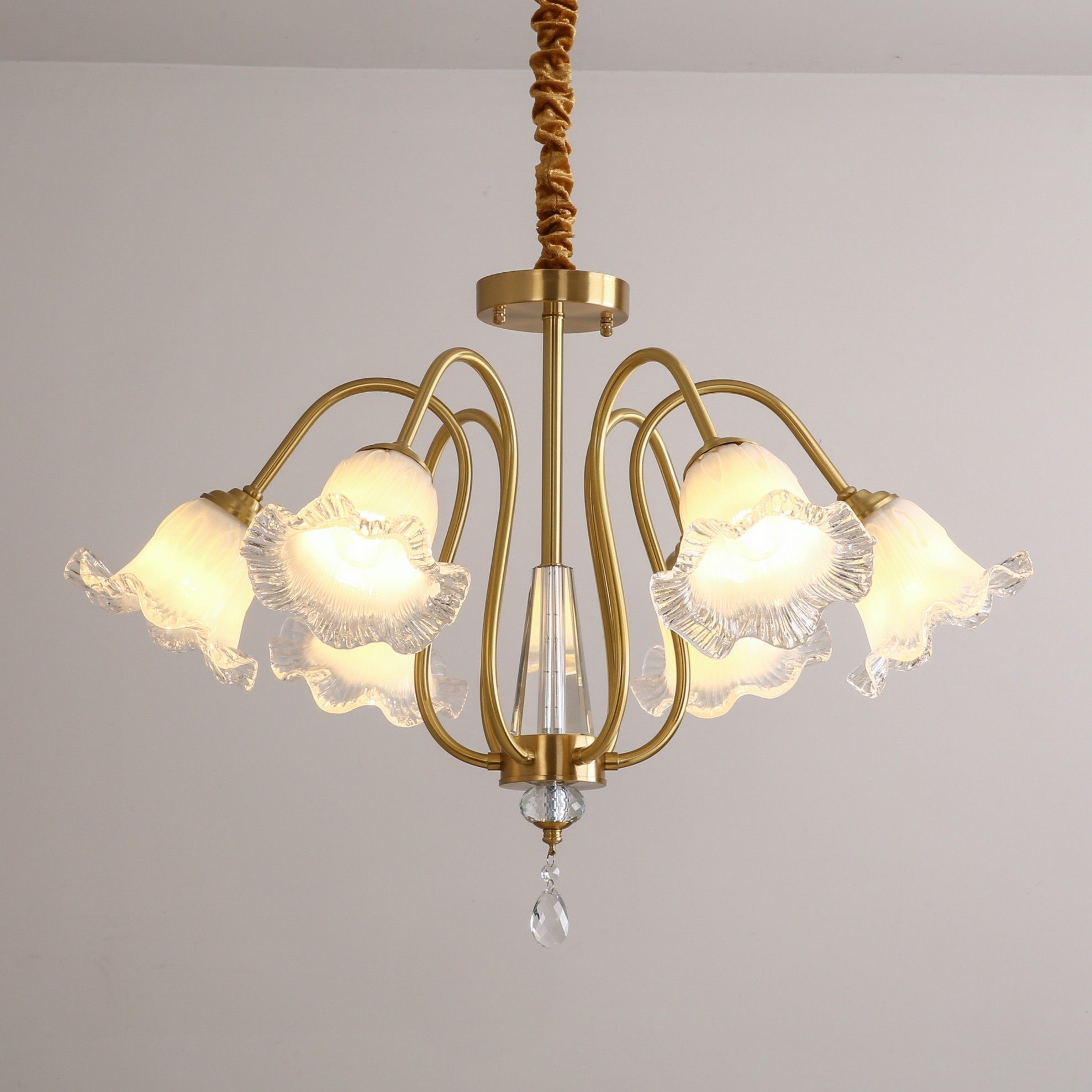 美式客厅吊灯餐厅卧室灯轻奢法式别墅田园水晶奶油风花朵全铜灯具
