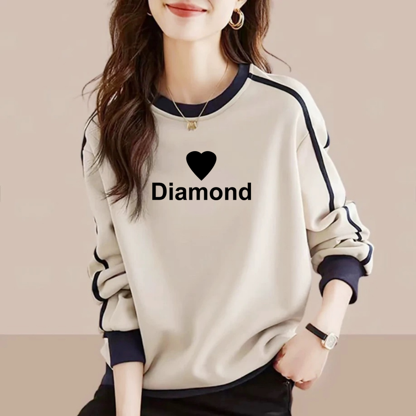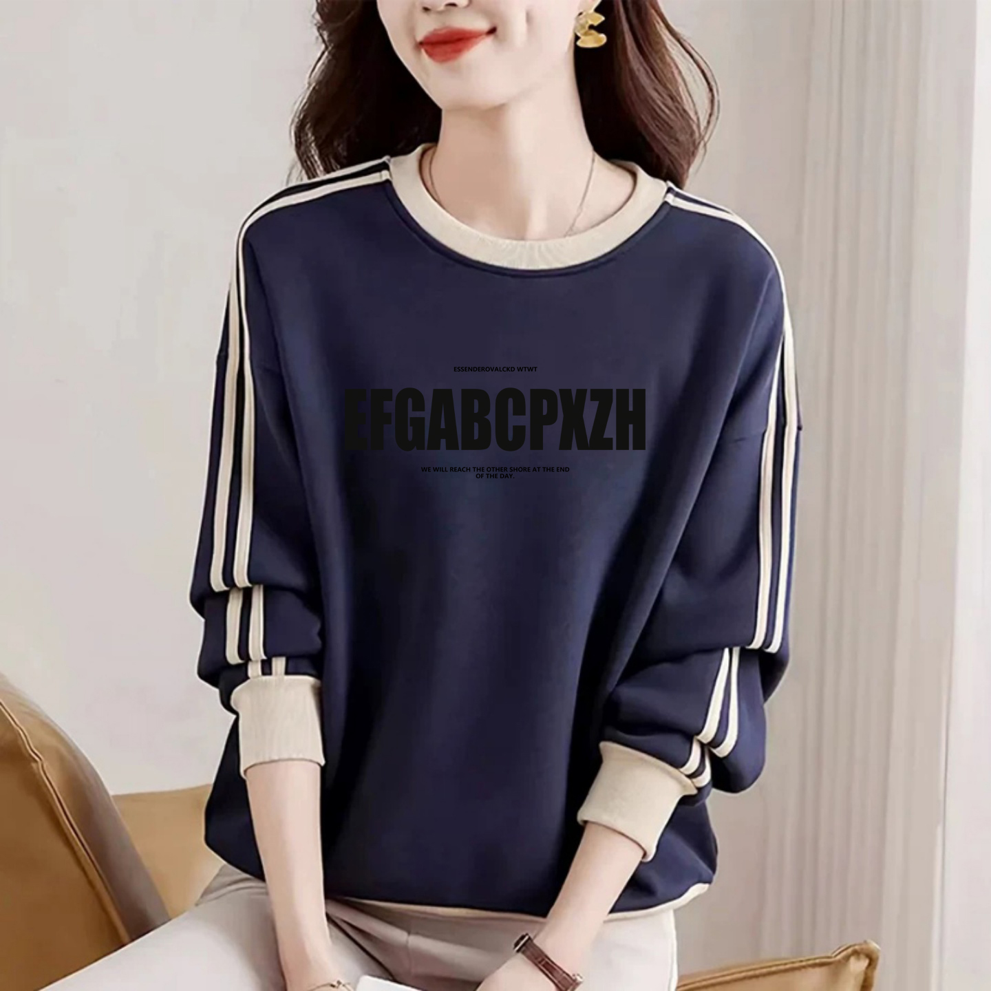外贸出口正品女装字母印花纯棉卫衣女打底衫休闲宽松圆领拼色上衣