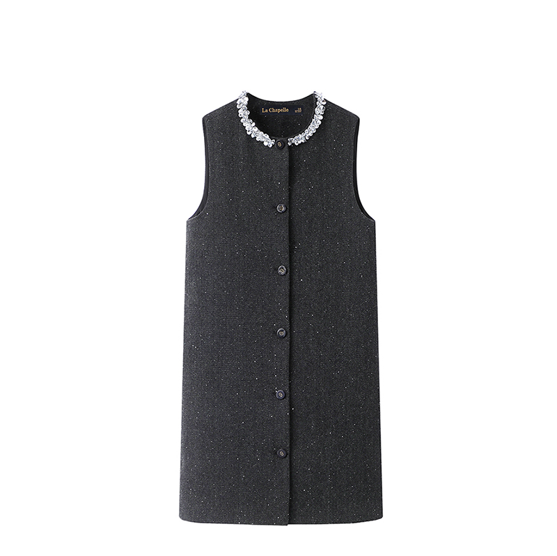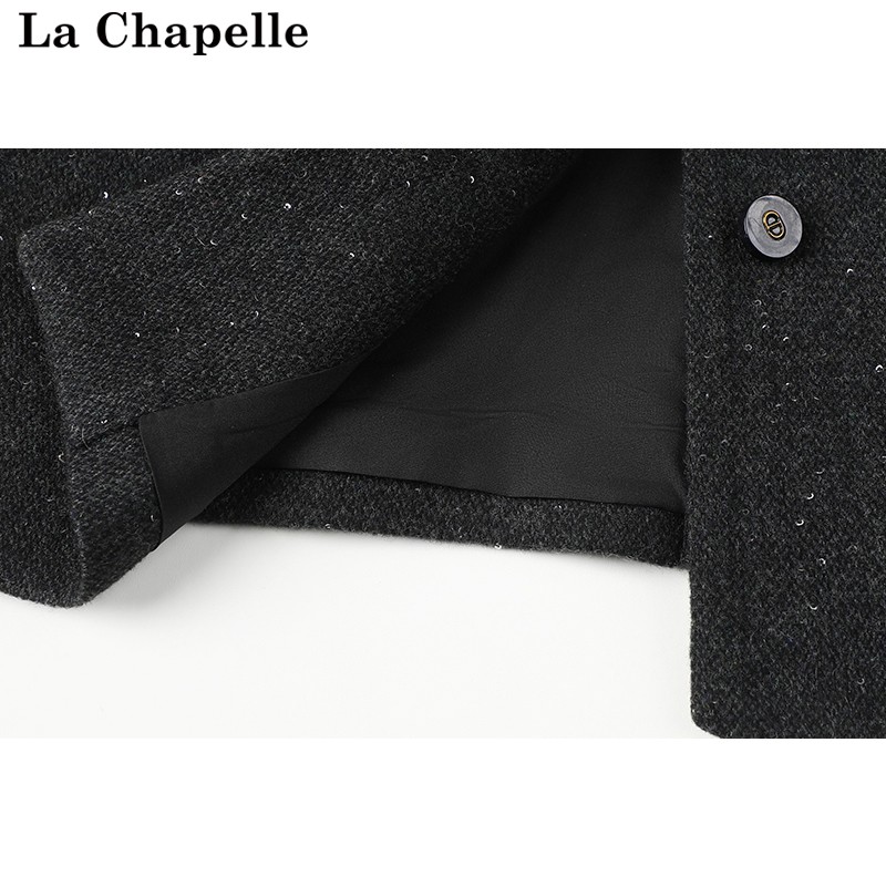 拉夏贝尔/La Chapelle春季新款小香风钉珠连衣裙法式气质单排扣女