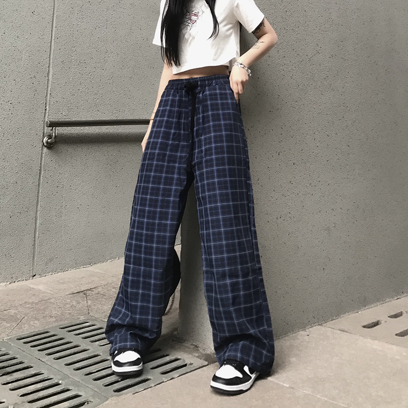 格子裤男女ins新款街头原宿个性撞色条纹格宽松阔腿束脚休闲长裤