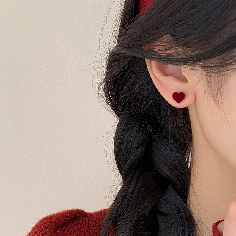 【巷南】999银丝绒爱心耳钉小众女2026马本命年耳饰过新年红耳环