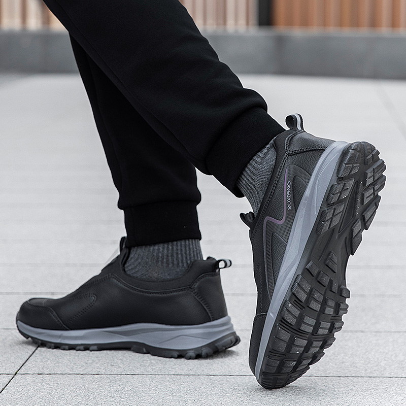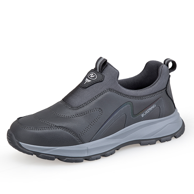 老人鞋春秋季防水休闲鞋黑色男鞋一脚蹬皮面防滑中老年爸爸健步鞋
