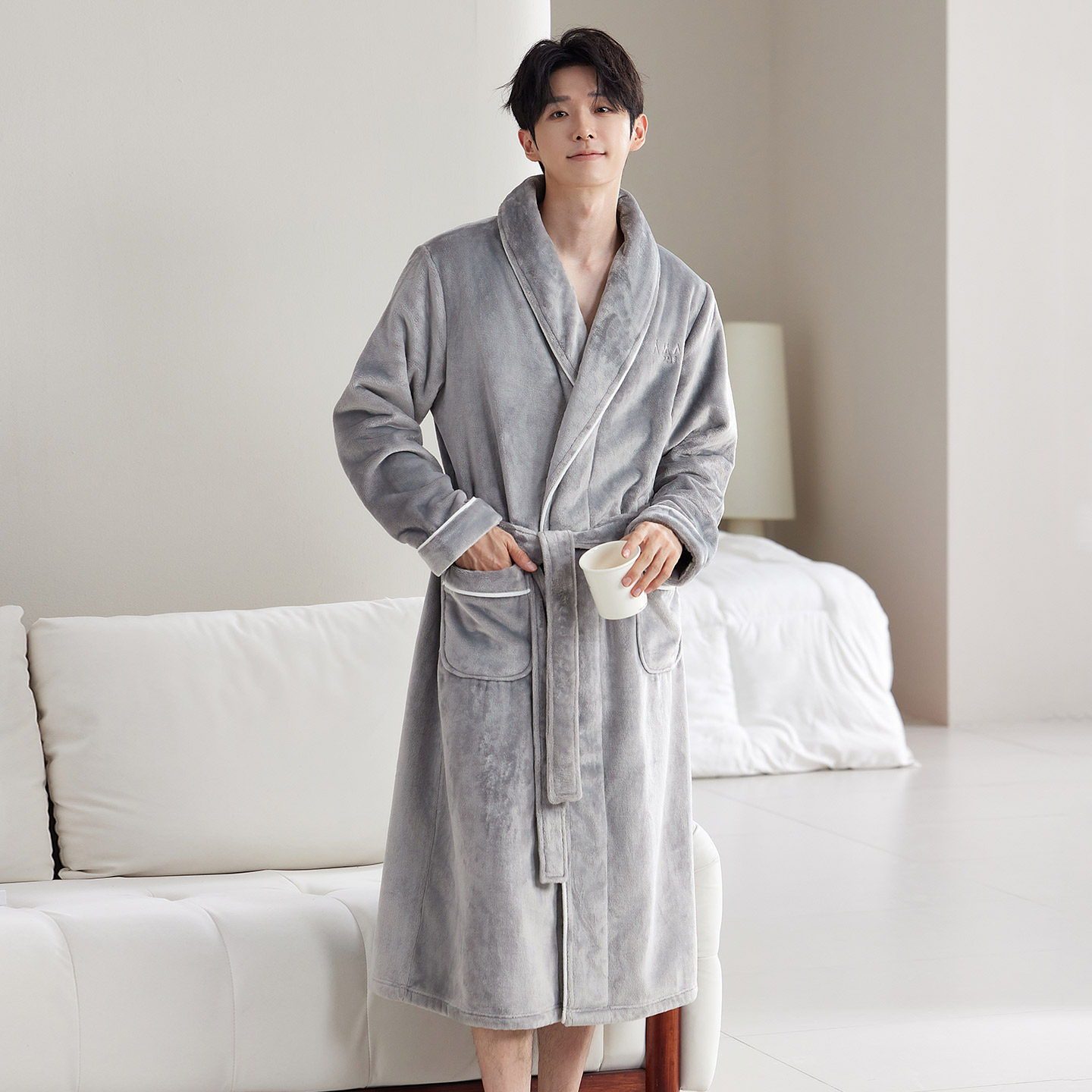 睡袍冬季男款浴袍珊瑚绒睡衣男长袍法兰绒长款家居服秋冬2025新款