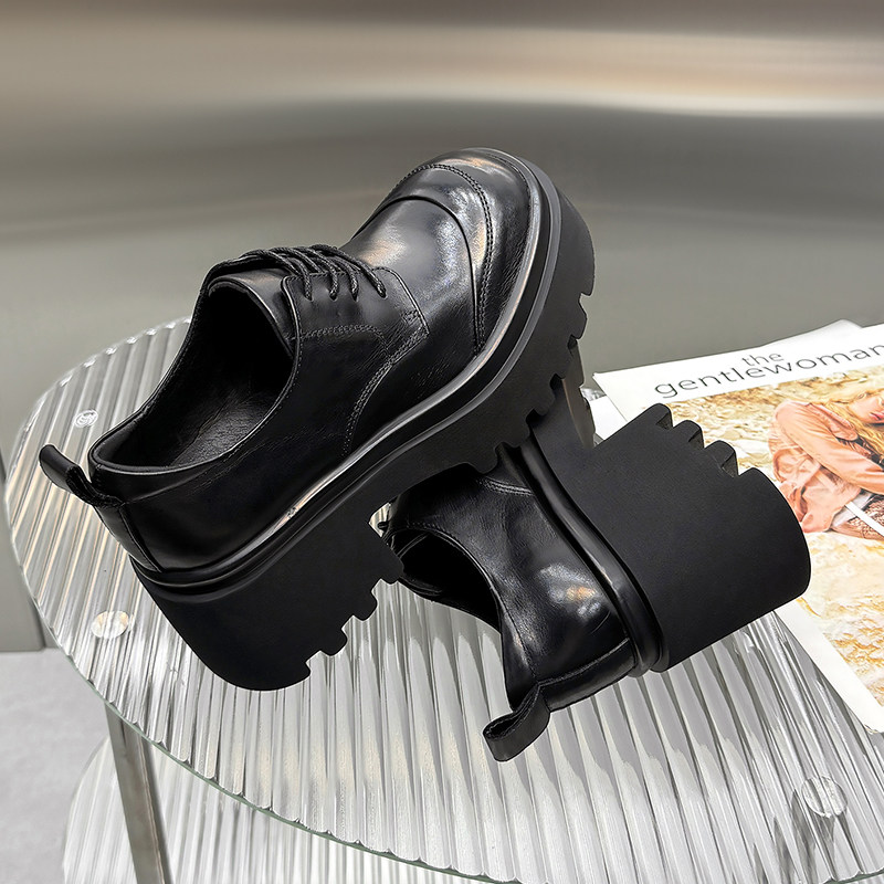 胎牛皮2025秋季新款系带乐福单鞋增高厚底圆头英伦风休闲小皮鞋女