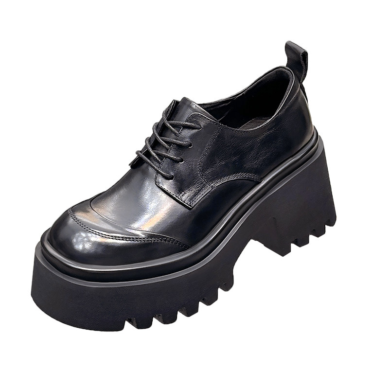 胎牛皮系带乐福单鞋厚底小皮鞋女