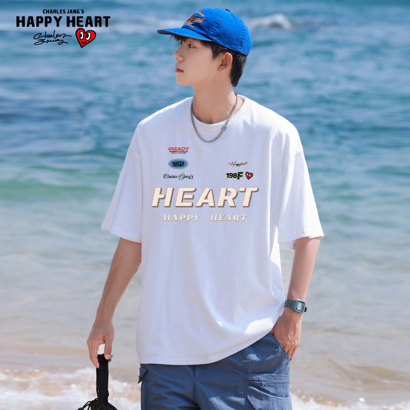 查尔斯桃心 短袖T恤男夏季2025新款夏纯棉运动休闲体恤男装半袖