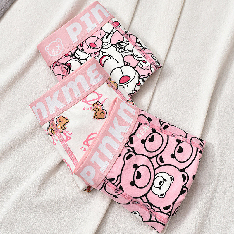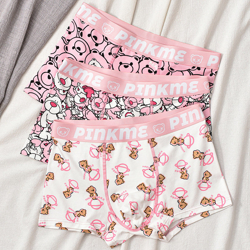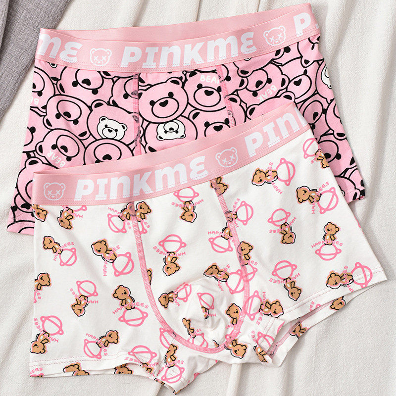 纯棉男士内裤猛男四角裤粉色送男友透气小熊平角裤七夕情人节可爱