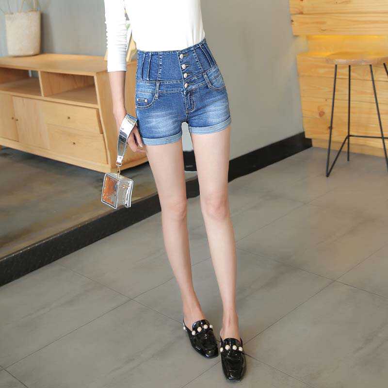 高腰显瘦牛仔排扣短裤女款夏弹力百搭修身收腹大码卷边三分热裤字
