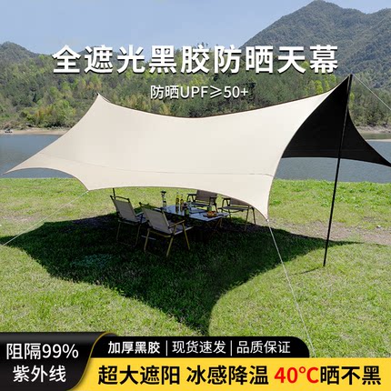 黑胶天幕帐篷户外便捷式免搭建露营帐篷野营野餐防晒八角遮阳装备