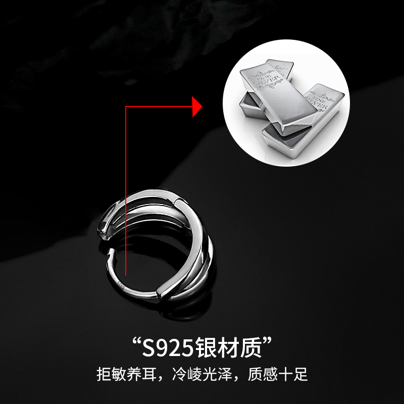 s925耳钉男潮高级感2024潮流个性女小众男生痞帅情侣耳饰镀银耳环