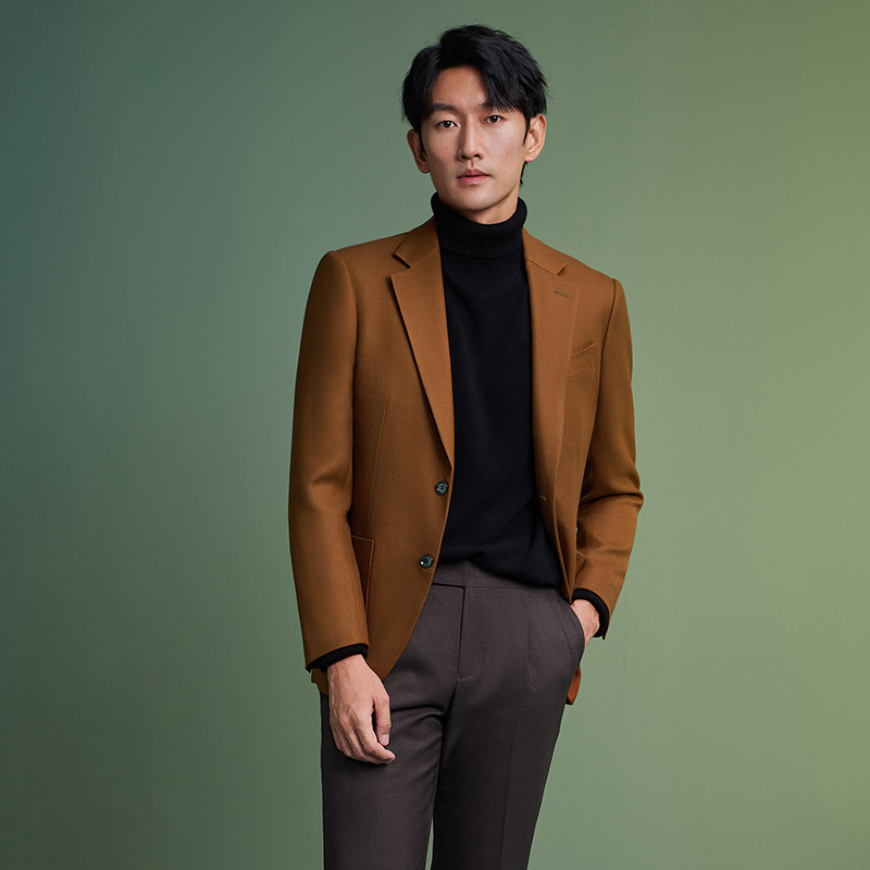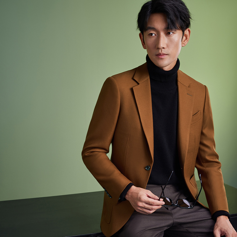 澳嘉羊毛西装外套男士棕色定制商务休闲高级感修身西服单西上衣男
