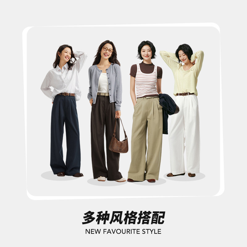 热风女士长裤阔腿休闲裤2026年春季新款时尚宽松显瘦百搭正装西裤