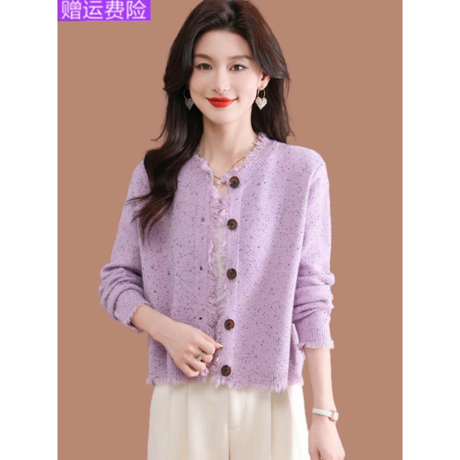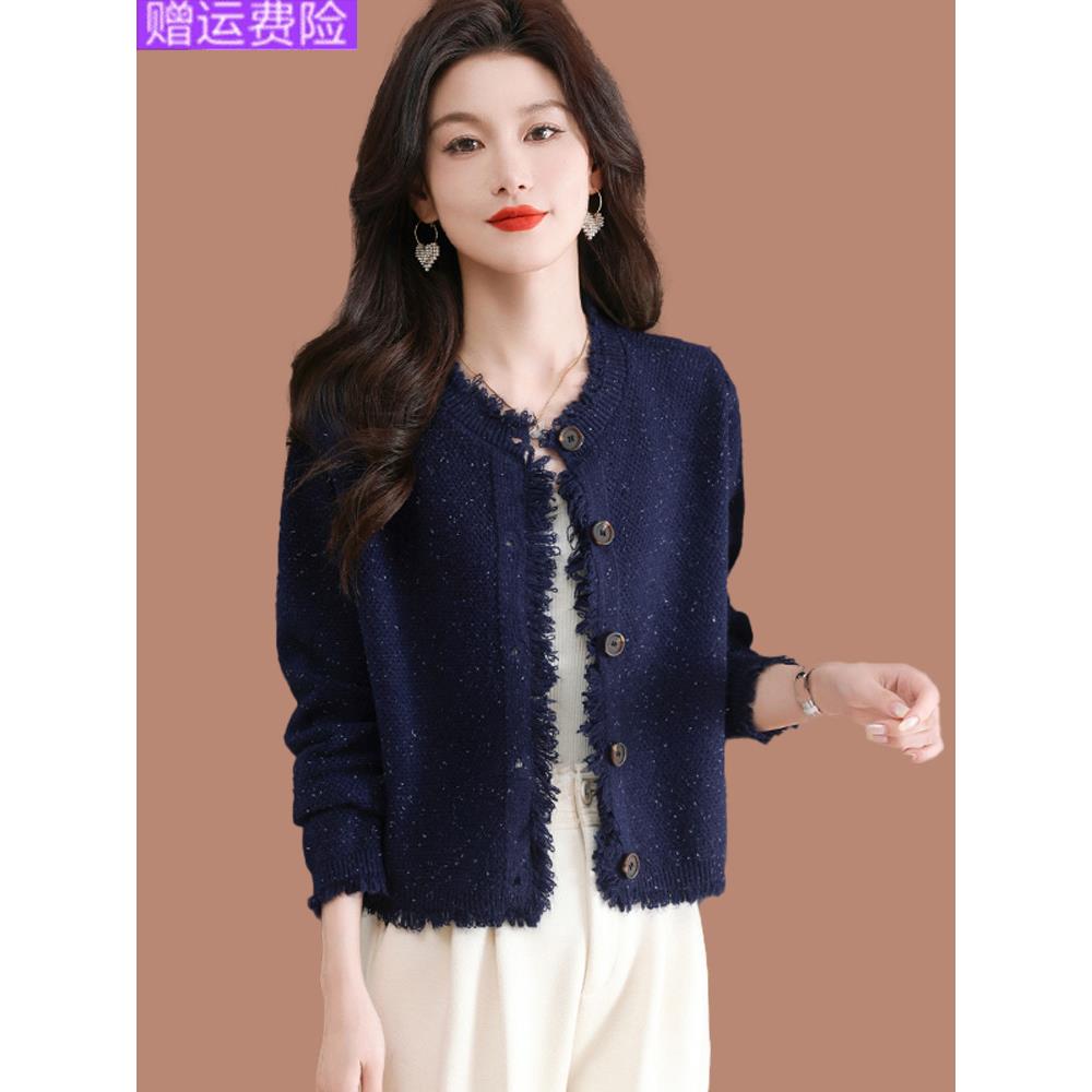 小个子红色流苏针织开衫女春秋新款外搭上衣高腰时尚短款毛衣外套