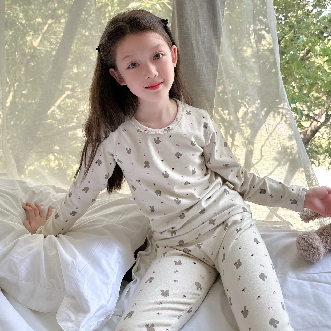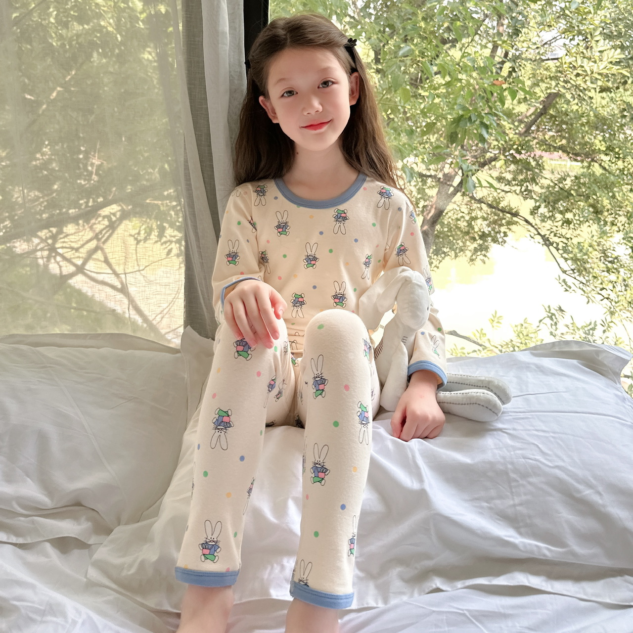 韩版高级洋气女童磨毛秋衣秋裤贴身亲肤舒适保暖内衣套装男童睡衣