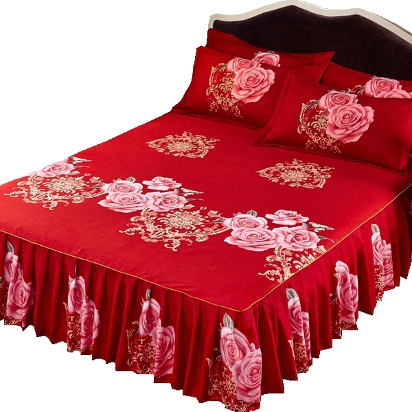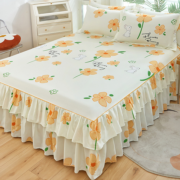 加厚磨毛斜纹全棉床裙单件纯棉床罩防滑保护床套床笠荷叶花边床单