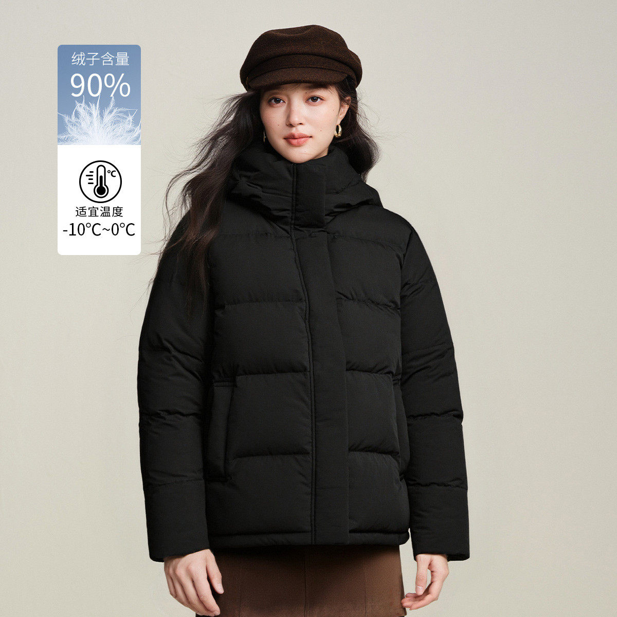 茵曼2025冬季新款短款鸭绒羽绒服女上衣宽松显瘦面包服外套小个子