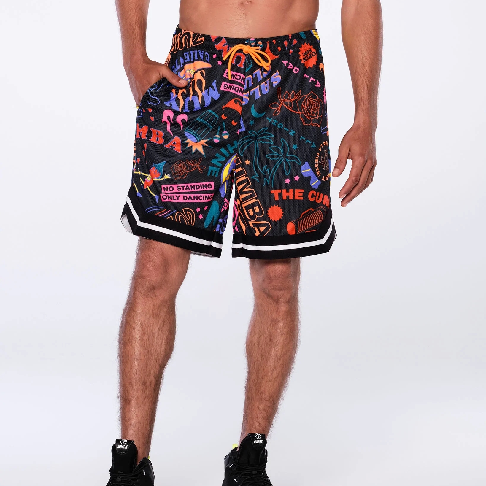 ZW尊牌健身服瑜伽休闲舞蹈运动短裤中裤宽松花纹印花男女同款 010