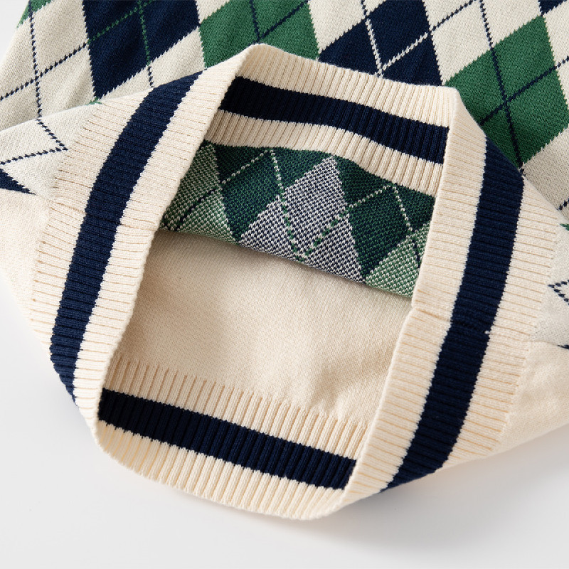 儿童背心毛衣春秋新款男童时尚马甲女童休闲宝宝坎肩菱格针织衫潮