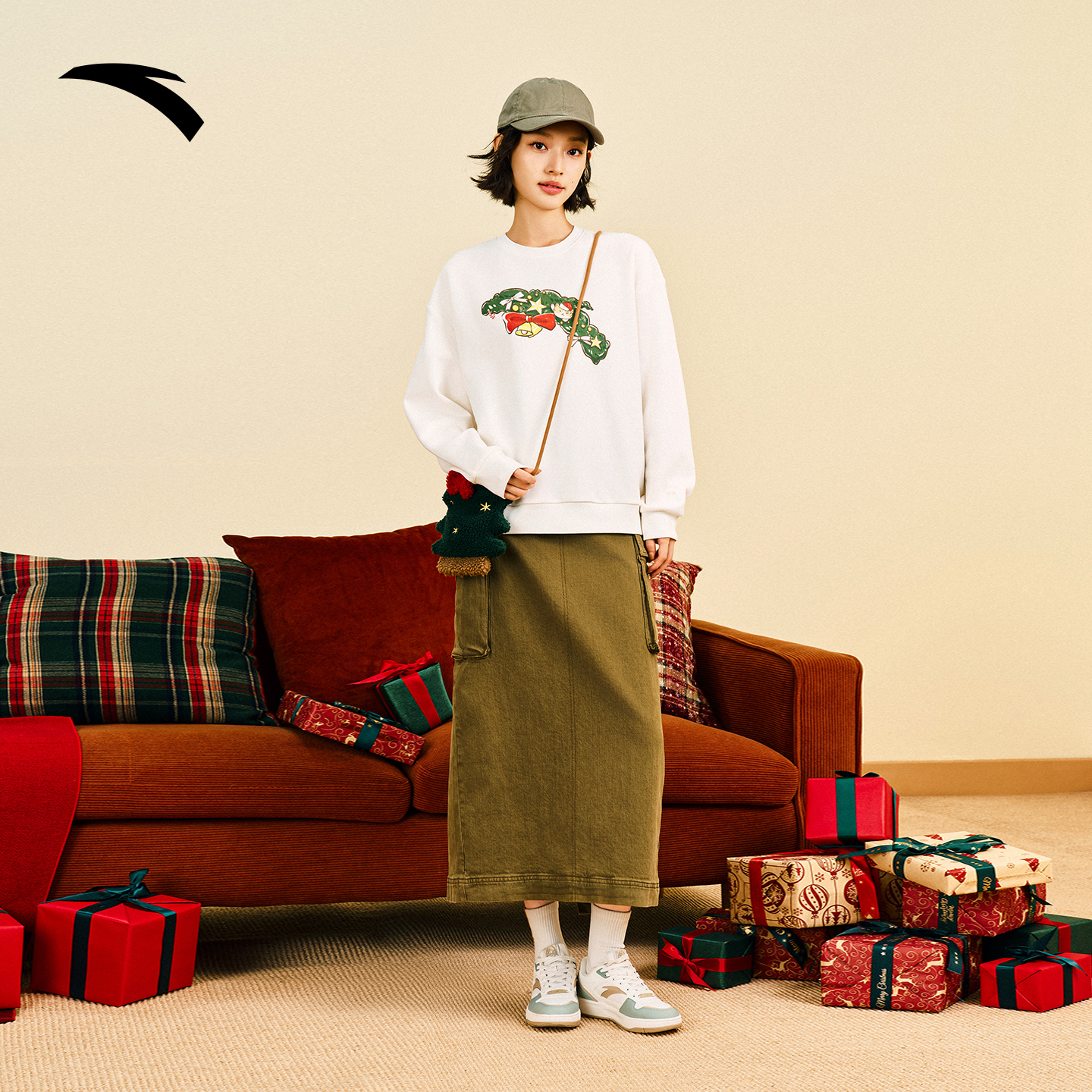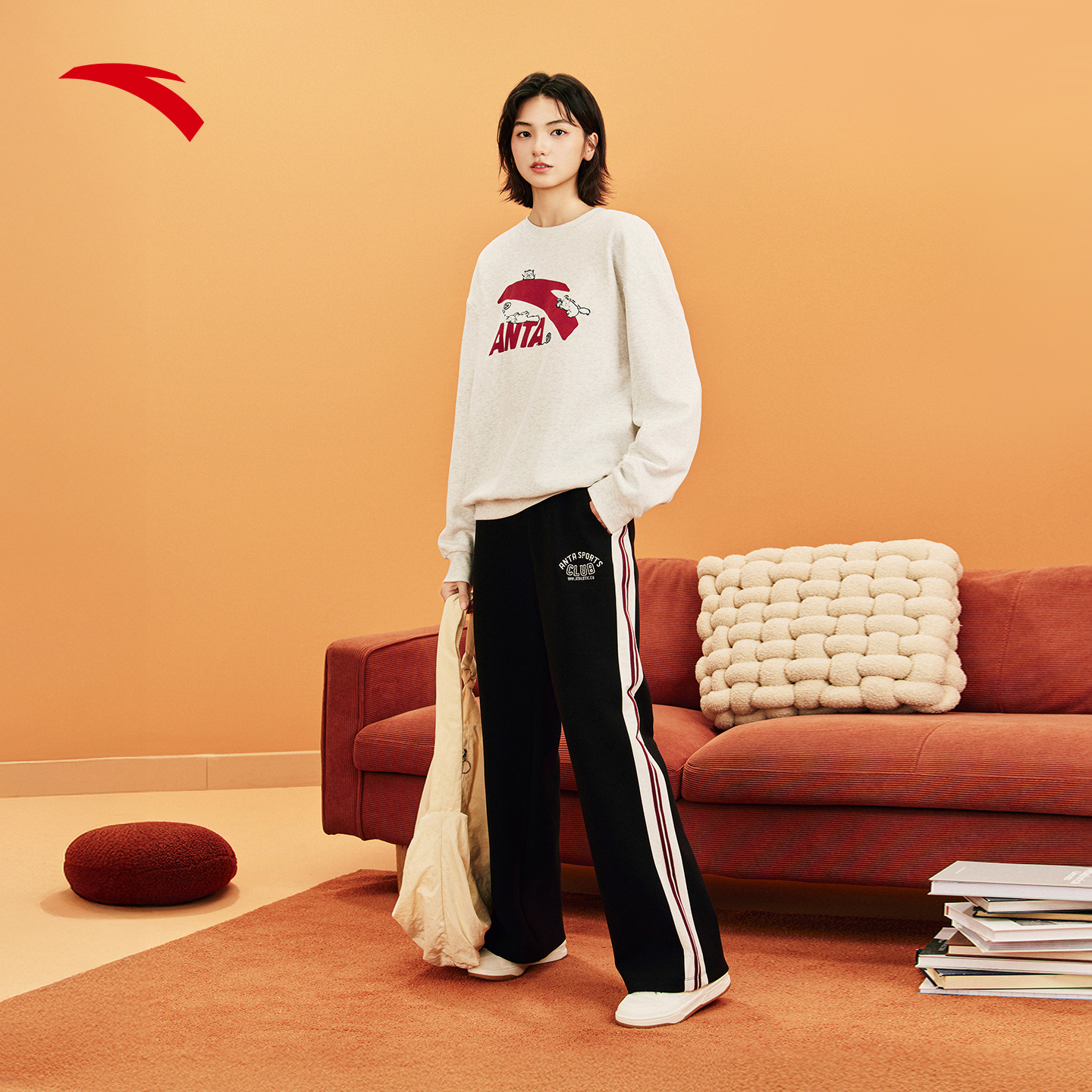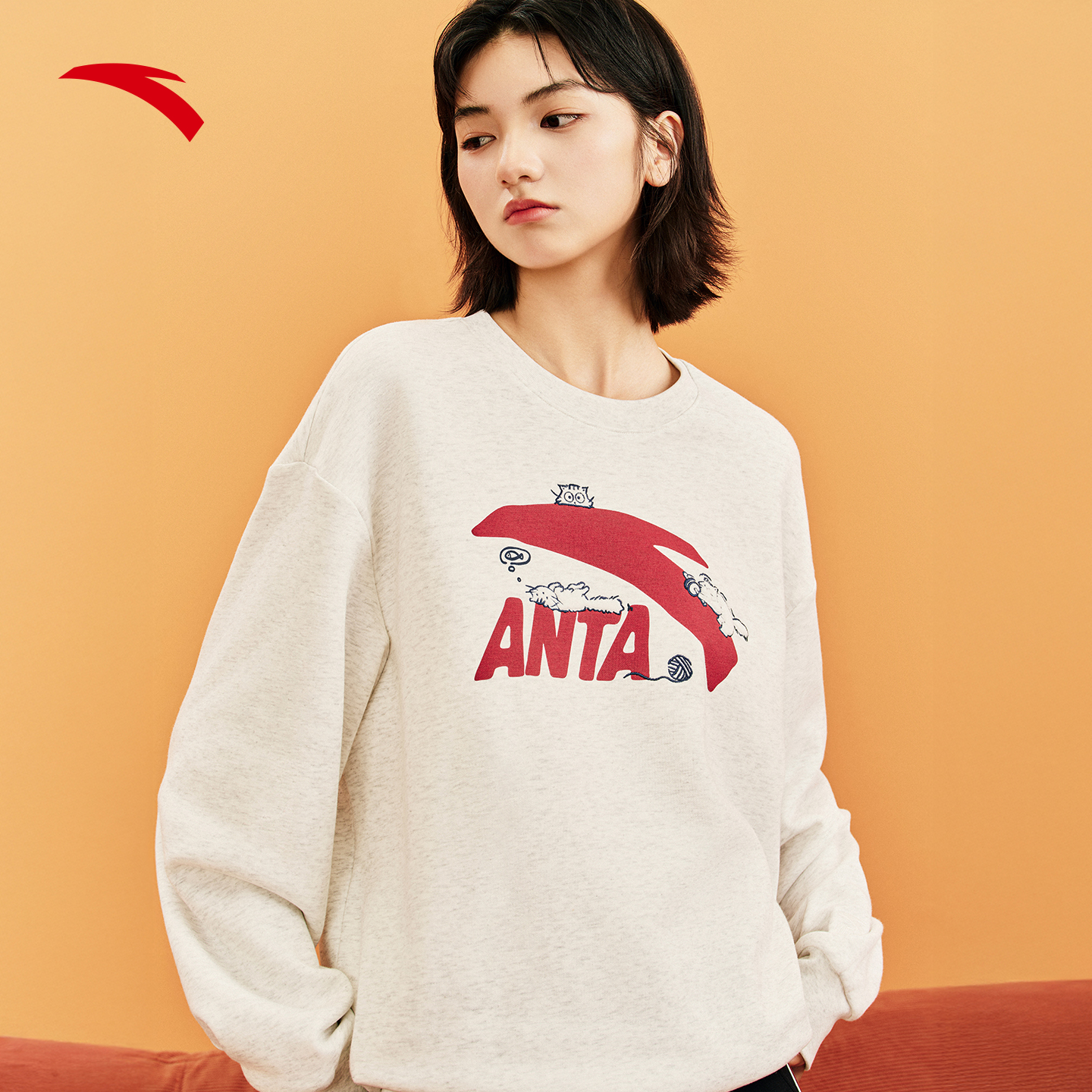 安踏小猫卫衣丨加绒保暖套头卫衣女冬季新款印花宽松休闲长袖上衣
