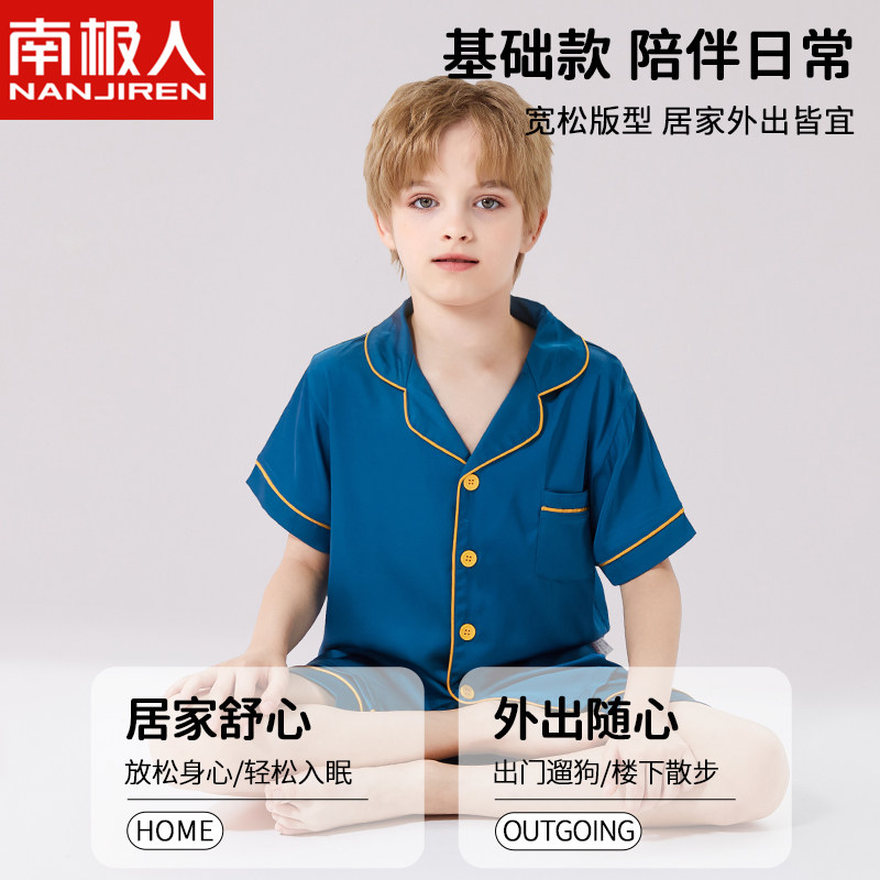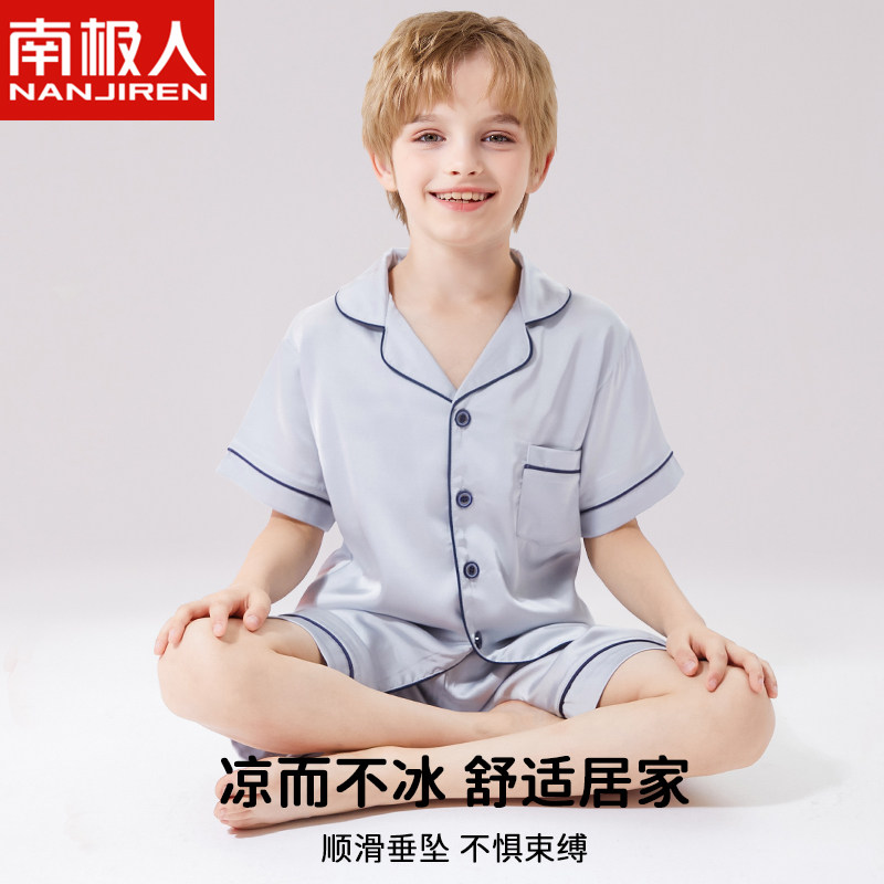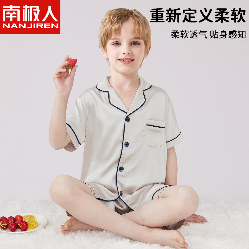 儿童睡衣男童仿真丝短袖夏季薄款冰丝a类小男孩中大童家居服套装
