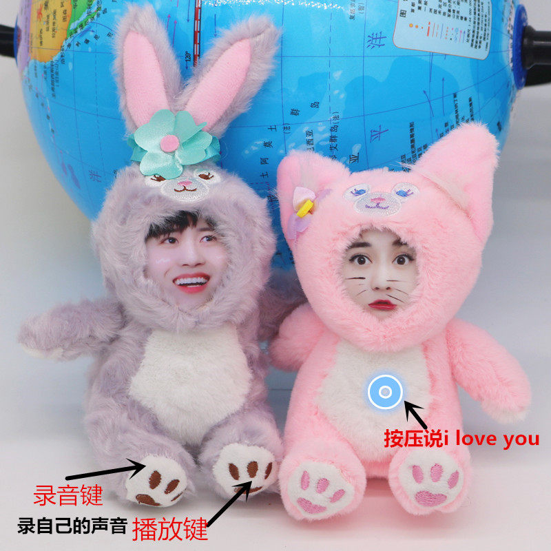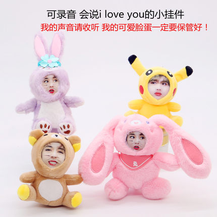 立体人面人脸毛绒公仔娃娃玩偶DIY照片定制录音说话情侣钥匙挂件