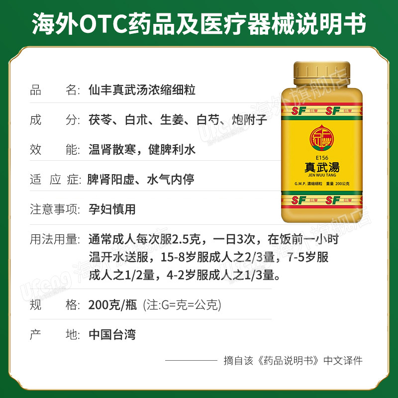 台湾仙丰中药真武汤倪海厦温肾散寒健脾利水脾肾阳虚水气内停