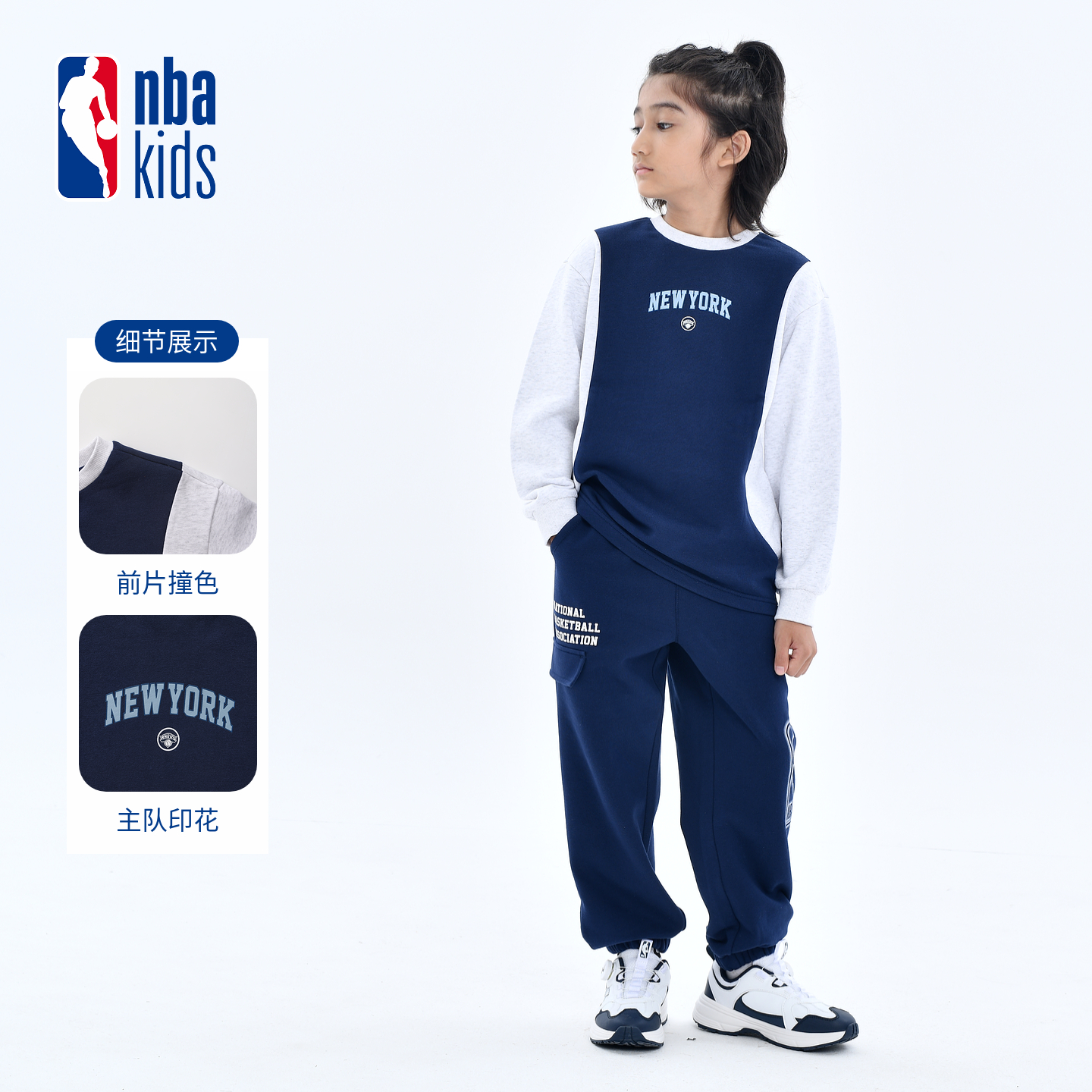 nbakids童装冬季新款男女童撞色T恤长袖儿童圆领卫衣K244TS004P